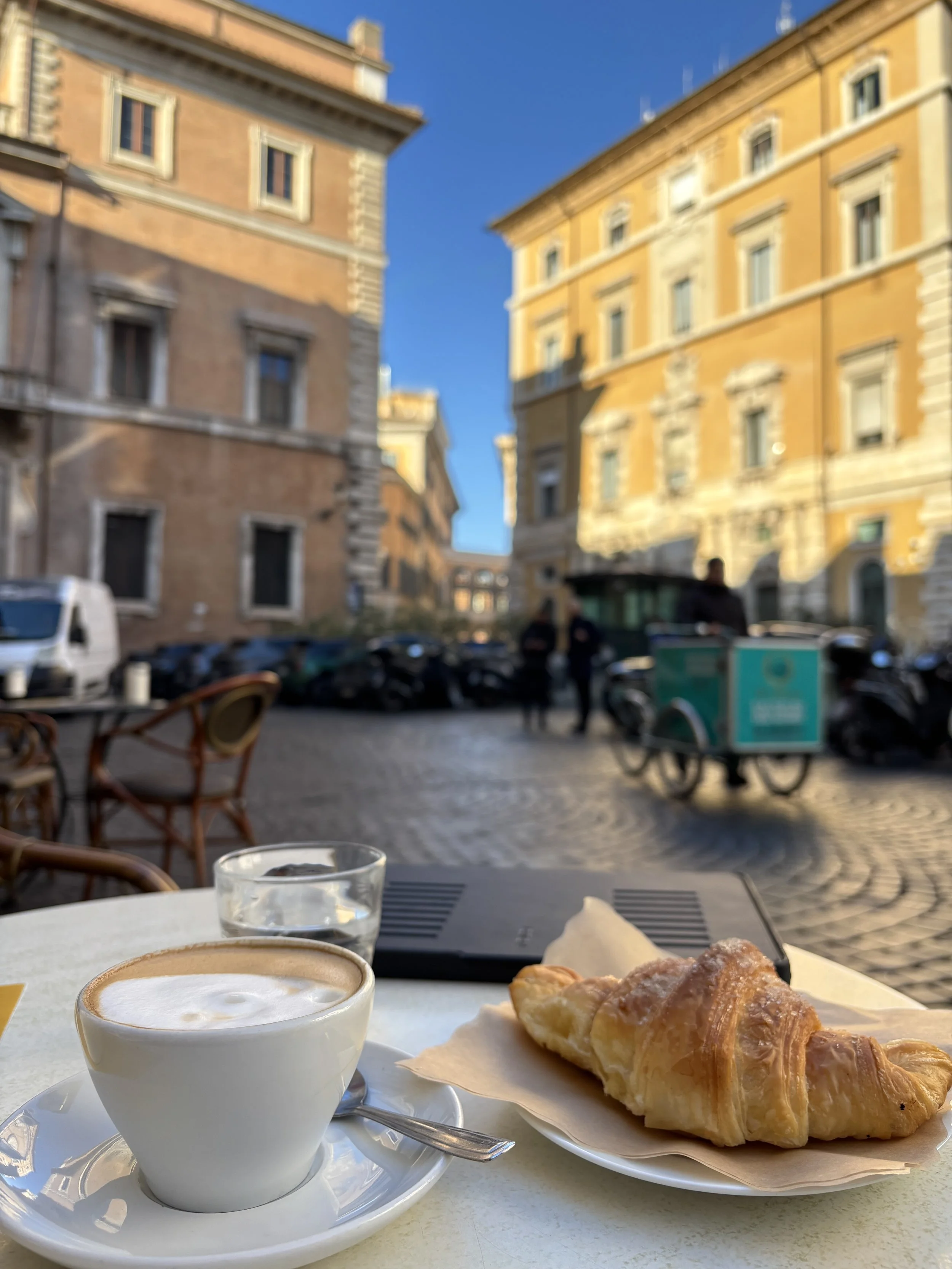 Como decía Frank Lloyd Wright: «Quitadme todas las necesidades básicas de la vida y dejadme solo los lujos». A mí me bastaría desayunar cada mañana, en una mesa para dos bajo el óculo del Panteón: un caffè y un cornetto semplice de Sant’Eustachio. La cafetería queda a pocos metros; seguro que Luigi nos lo serviría encantado.